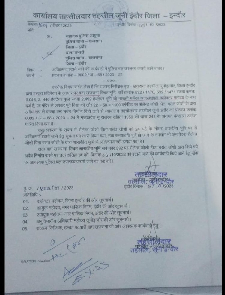 पूजा करने आया, कब्जा कर महल खड़ा कर दिया – इंदौर कलेक्टर (मंदिर) की ज़मीन पर बना डाली चार मंज़िला इमारत, फिर मंदिर की दीवार तोड़ी
